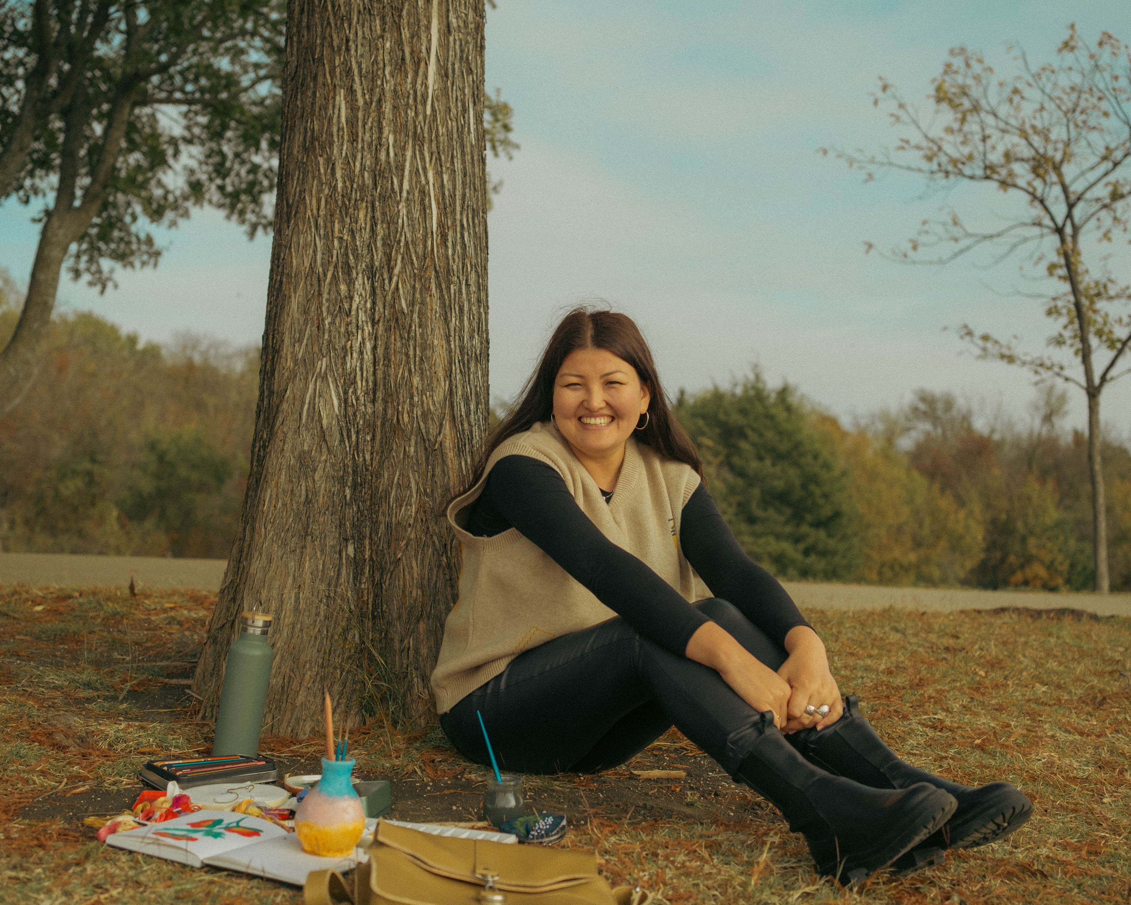 My name is Kuralay Shadenova, and I am an artist, surface pattern designer, and embroiderer based in San Antonio, Texas. I specialize in original hand-drawn surface print design, creating joyful, expressive patterns inspired by ethnic motifs reimagined through a contemporary handwriting and color palette.